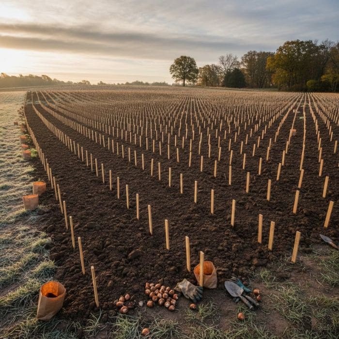 We planted everything by hand in late October. Each bulb went into the ground about six inches deep, spaced carefully so the stems would not crowd each other later.
