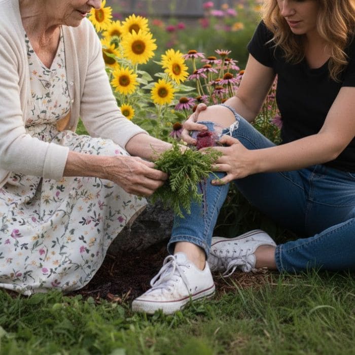 She explained that yarrow helps stop bleeding because it supports clotting and helps blood vessels constrict. It also has properties that help keep wounds clean. For small injuries, it was often enough.